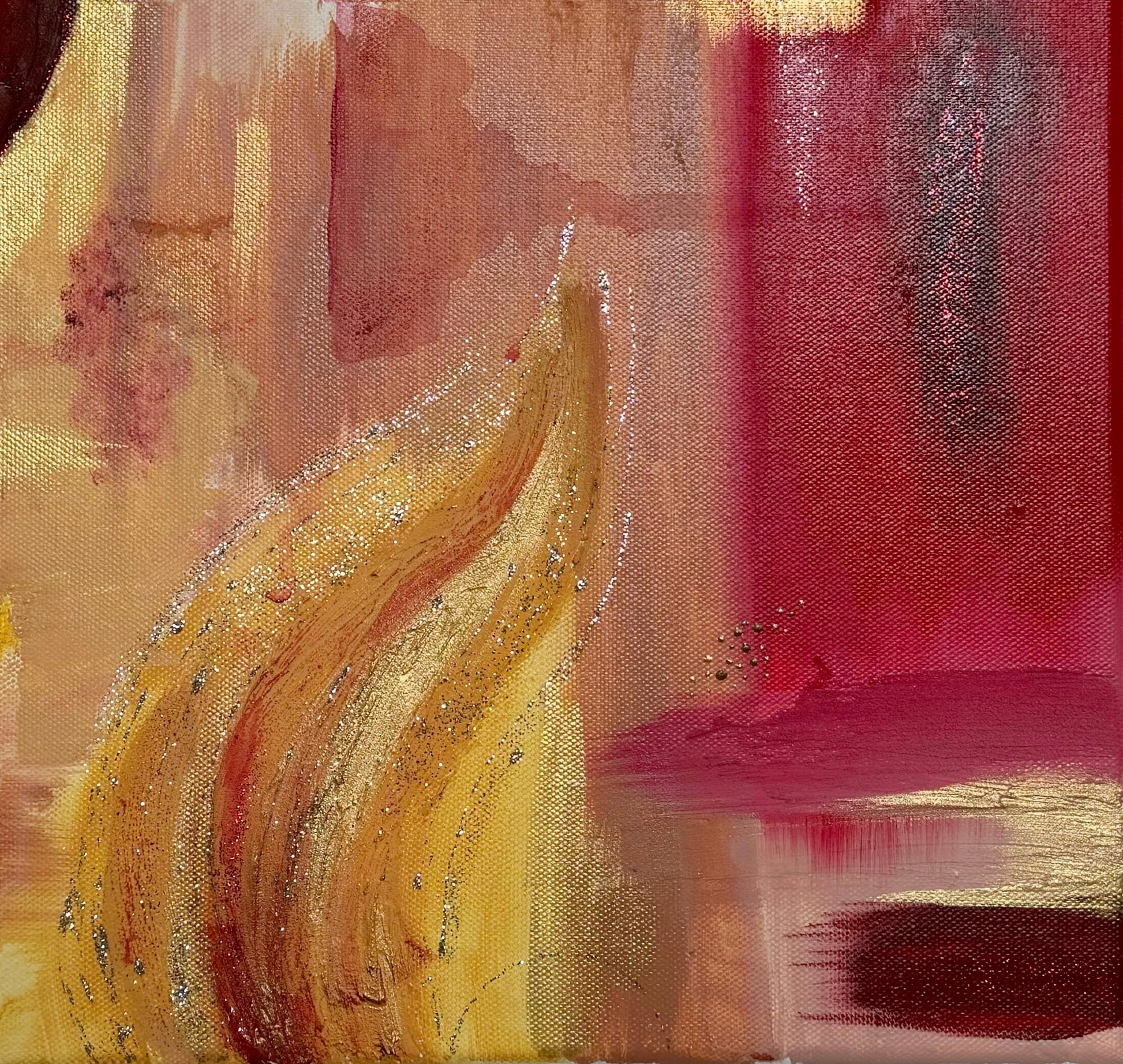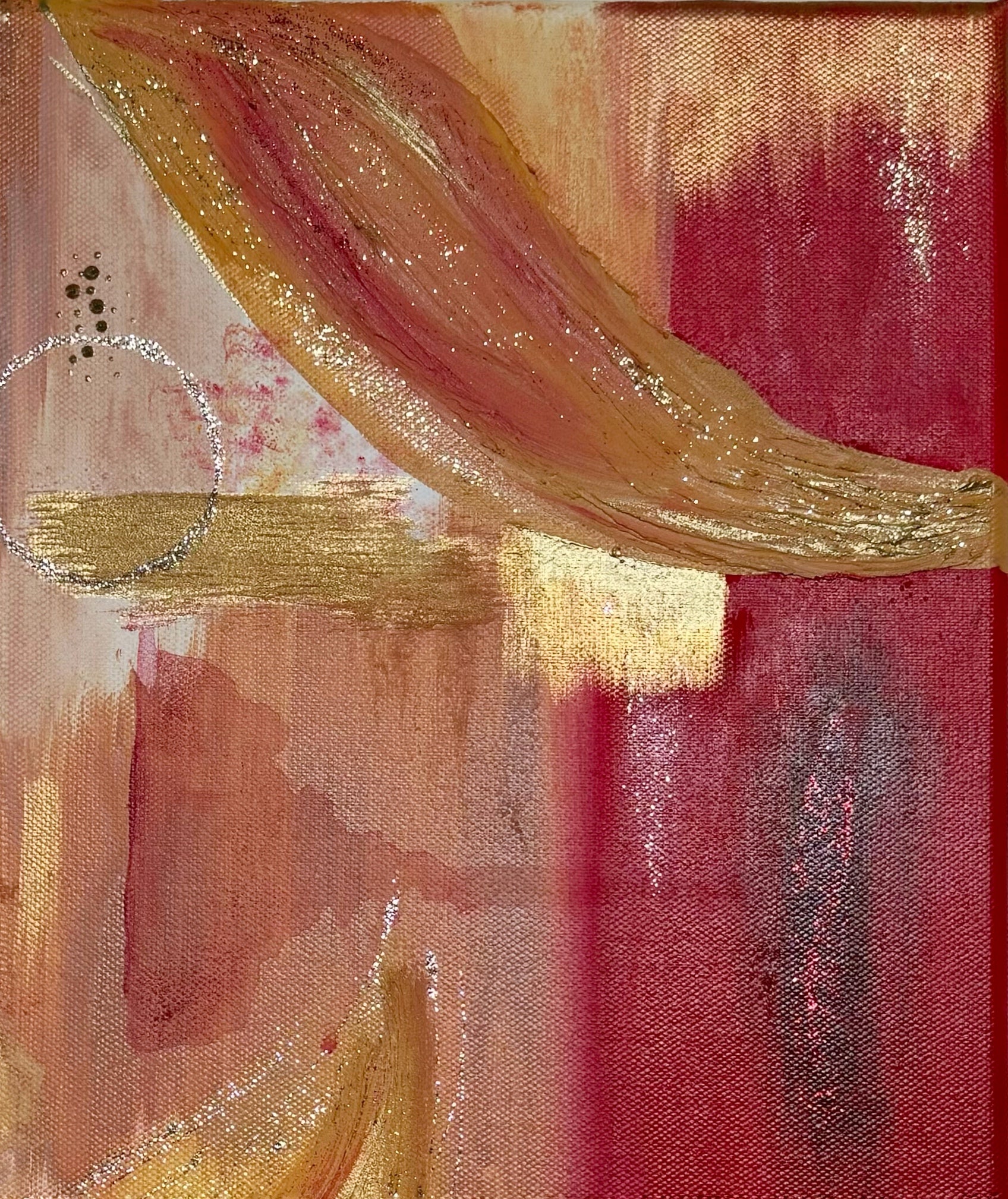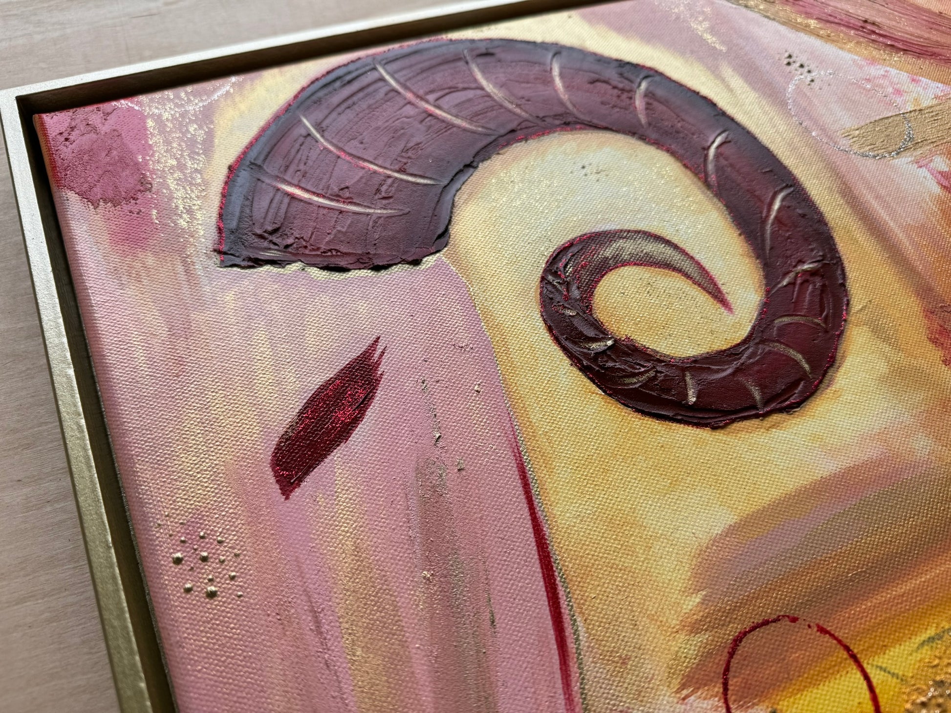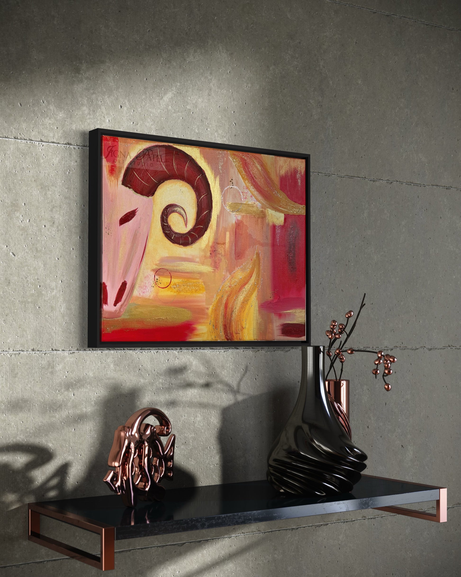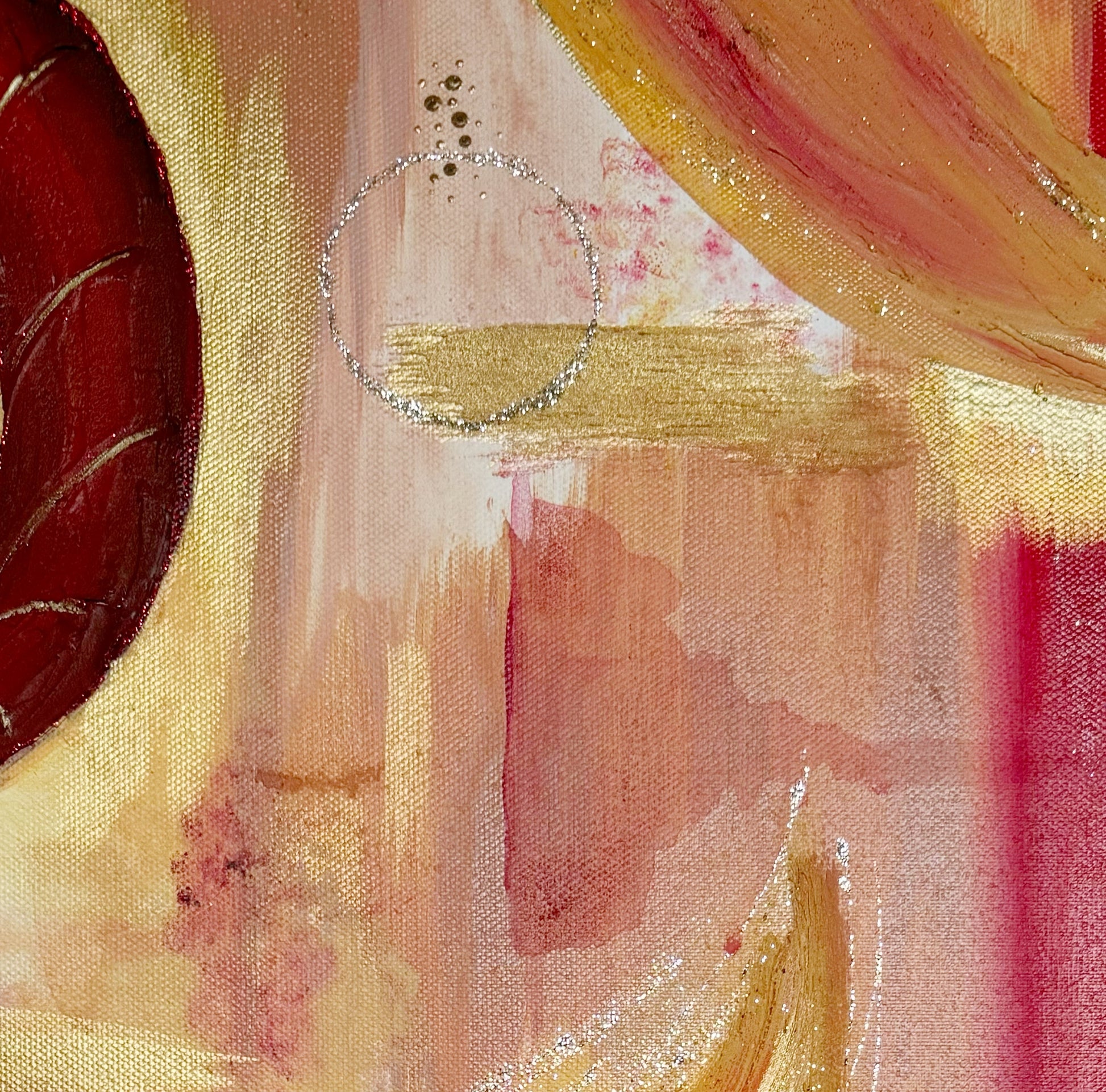This piece is the 5th in the new series, “Ignition”, and is perfect for Aries season! The number of textured elements in this piece are a little more aggressive, as are the bold, contrasted colors of red and gold, than the previously seen, more muted color palettes, to depict the bright fire that burns within us Fire Signs! 😍. The fiery red is sure to bring out the excitement in your personal spaces and conversations at gatherings!
